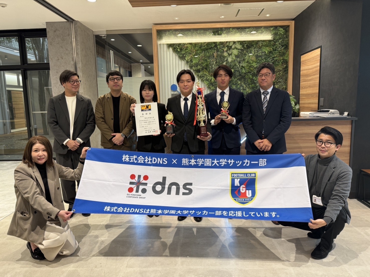 学園大サッカー部の皆様のさらなるご活躍を心より期待するとともに、株式会社DNSはこれからも変わらず応援してまいります。